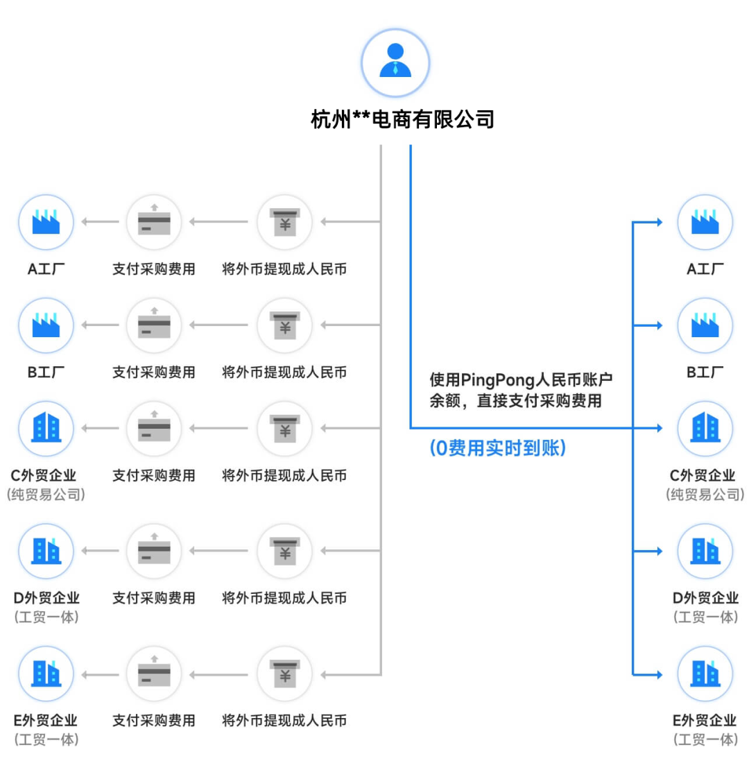 “自从知道PingPong人民币账户的好处后,我们就推荐给了工厂方,他们没多久都开始用了起来。之后,我们收到外币,就会先提现到人民币账户。等到要付款时,直接输入对方账号,马上就到账了,还不花1分钱,实在是太好了。”